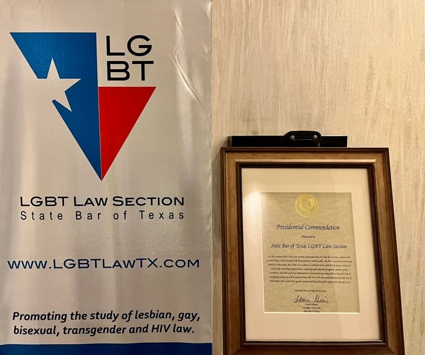 On the occasion of the LGBT Law Section’s 25th anniversary, the State Bar of Texas celebrates the section’s tireless work on behalf of all Texas attorneys and the public. The first section of its kind in any state bar in the nation, the LGBT Law Section is a vital part of the State Bar of Texas as the go-to resource for networking opportunities, continuing legal education programs, caselaw updates, newsletters, and other sources of information on laws pertaining to gay, lesbian, bisexual, and/or transgender persons, as well as persons living with HIV. With this commendation, the Stare Bar of Texas honors the section’s first quarter century and looks forward to many more years of service.